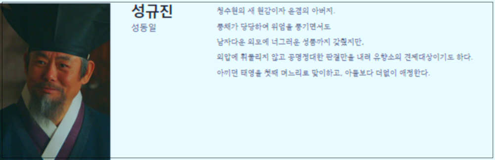 의창현에서 온 미모의 여인으로 그녀에게는 누구에게도 밝힐 수 없는 비밀이 있습니다. 그런 미령은 외지부(변호사)의 집무실에서 태영을 처음 마주하게 됩니다. 이타적이고 똑 부러진 미령에게서 자신의 모습을 발견한 태영은 미령과 점점 가까워지게 됩니다. 자연스럽게 도겸까지도 가까워지게 되고 모든 것이 미령의 계획대로 진행이 되고 있습니다.